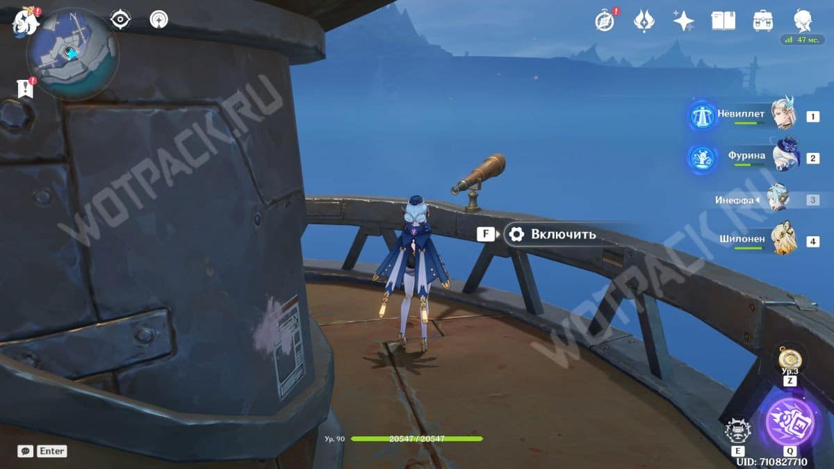 Направьте луч света в одну из нескольких точек, после чего посмотрите туда через трубу, чтобы проверить, есть ли там спрятанные сокровища или интересные точки. Дополнительно около нее располагается Лунокул.