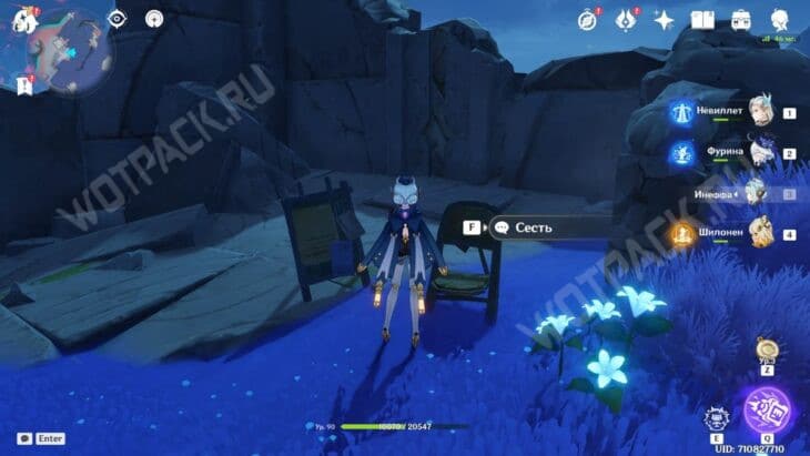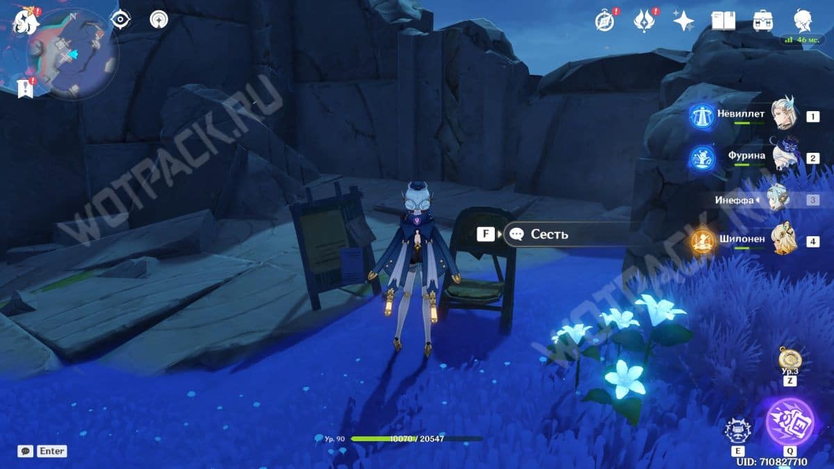 В западной части локации около обломков стены найдёте доску объявлений в таверне и одинокий стул рядом. Если прочитаете надписи на ней, то обратите внимание на запрет занимать место неизвестного человека. Сядьте на стул и подождите, пока HP персонажа снизится до минимума.