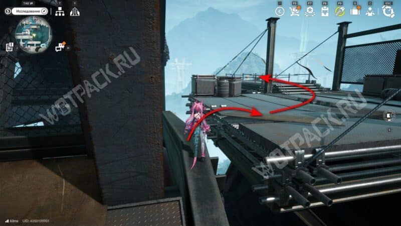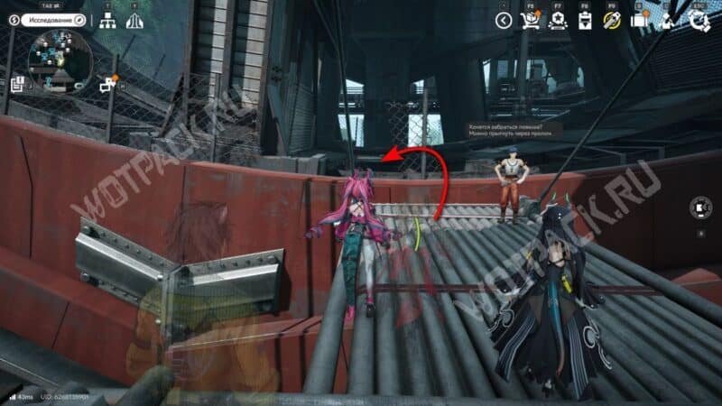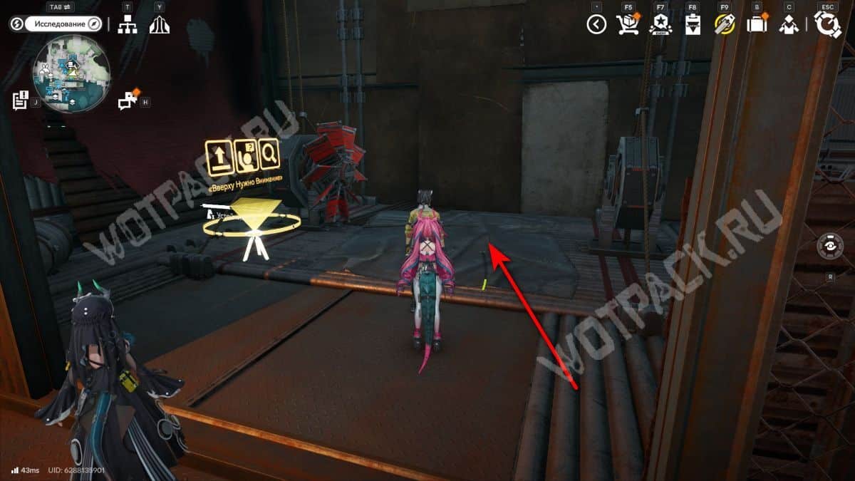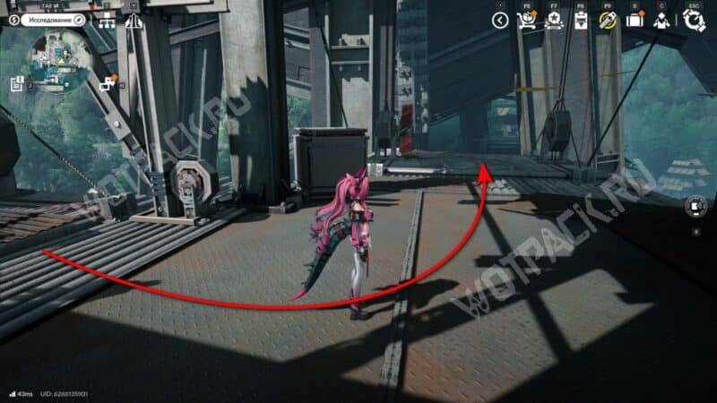 다음으로 왼쪽으로 돌아서 다른 엘리베이터를 타세요. 앞으로 쭉 직진해서 NPC 근처에서 기다리면 거대한 회전 바퀴에 기어들어갈 수 있는 구멍이 나타납니다.