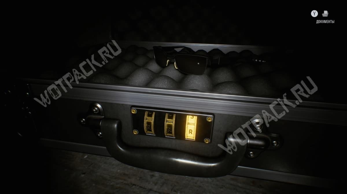 Правильный пароль от кейса в полицейском участке: RRR. В награду за открытие получите украшение на пистолет «Усиленная оптика», которое даёт неограниченную пробиваемость и увеличивает мощность последней пули в барабане.