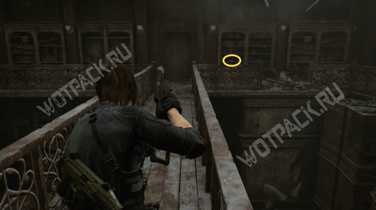 Дверь в читальню находится справа от лестницы в зоне отдыха. Пройдите внутрь и поднимитесь на второй ярус.