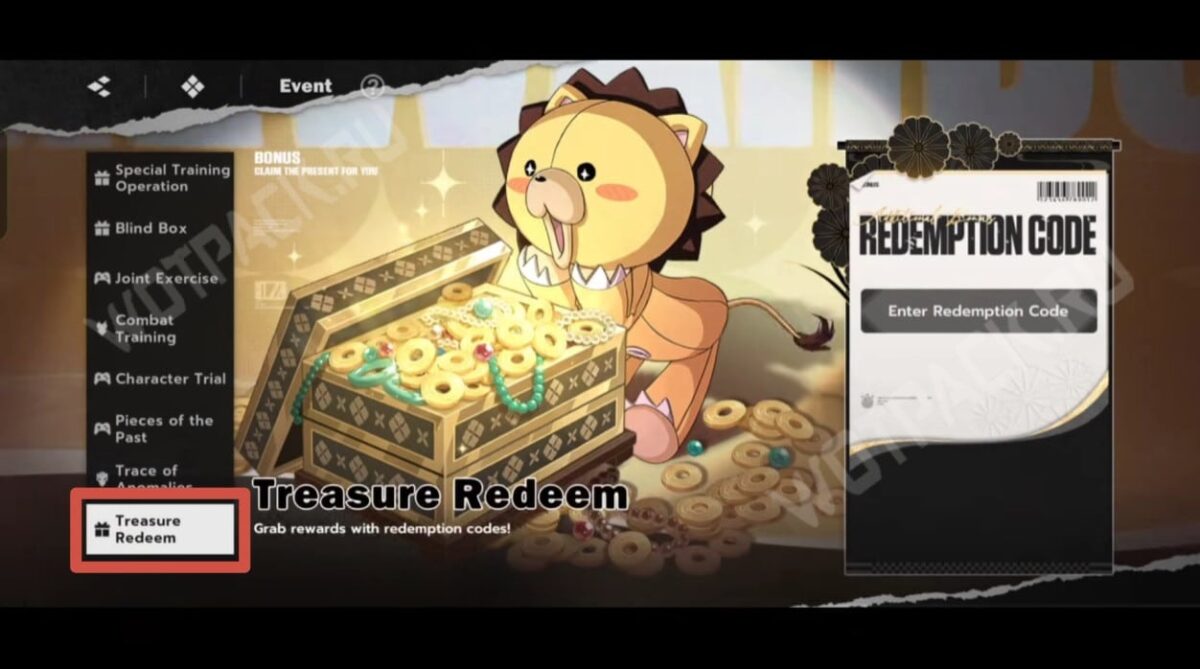 - Откройте раздел «Event» и перейдите во вкладку «Treasure Redeem».