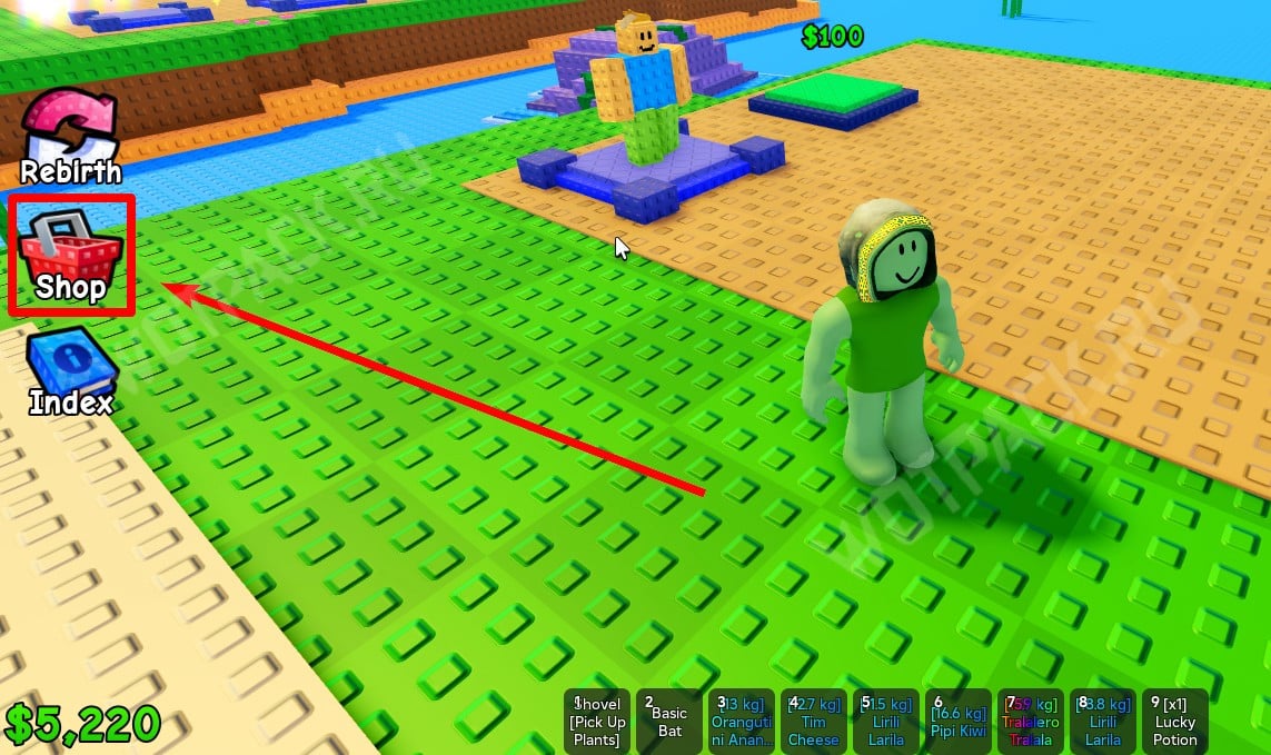 - Зайдя в режим, кликните на иконку корзины с подписью «Shop» в левой части экрана.