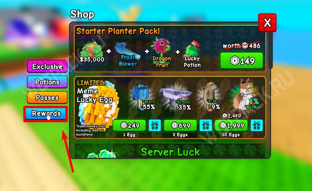 - В открывшемся окне прокрутите до самого низа или кликните на раздел «Rewards».