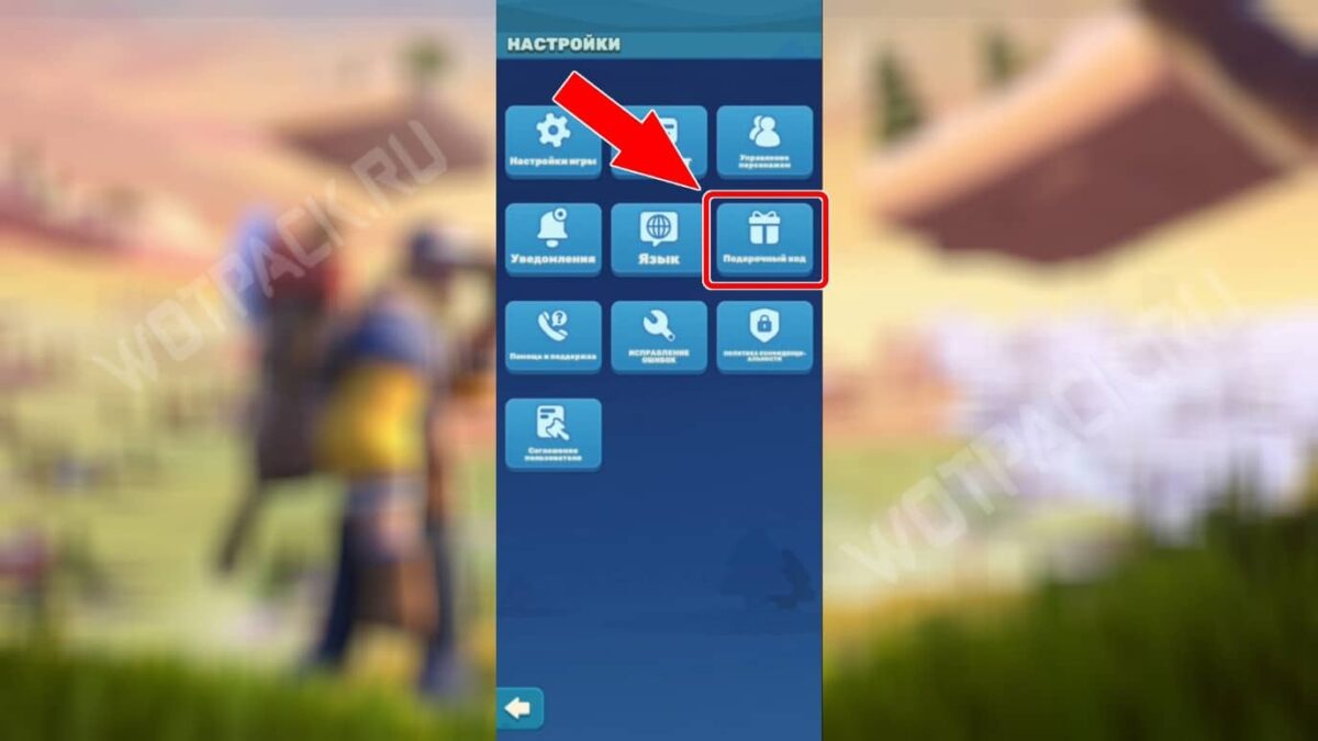 - В открывшемся меню найдите кнопку «Подарочный код».