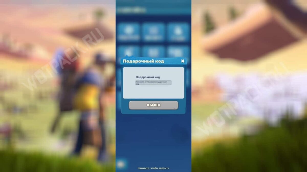 - Во всплывшем окне введите код и нажмите «Обмен».