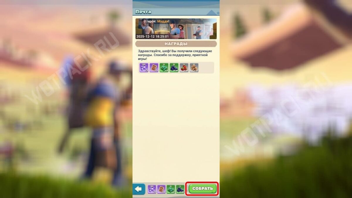 Нажав зелёную кнопку «Собрать», получите все содержащиеся в письме награды.