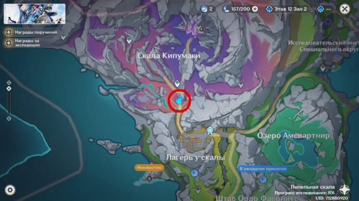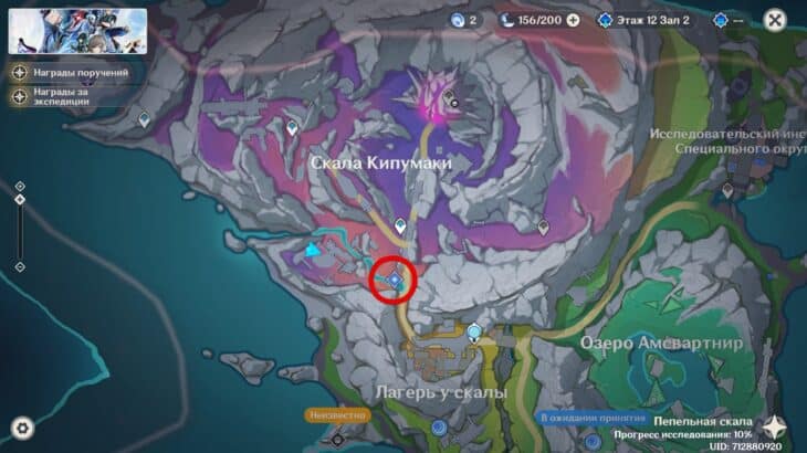 У входа на скалу Кипумаки взаимодействуйте с четвёртым узлом и активируйте последний колос тёмного леса.