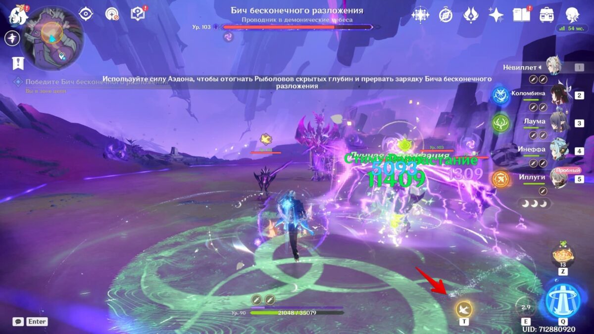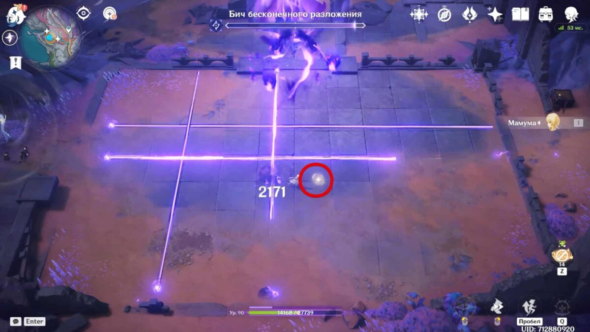 Битва с Бичом бесконечного разложения пройдёт с видом сверху. Уклоняйтесь от его ударов, хватайте сферы и бейте мини-босса способностью на ЛКМ.