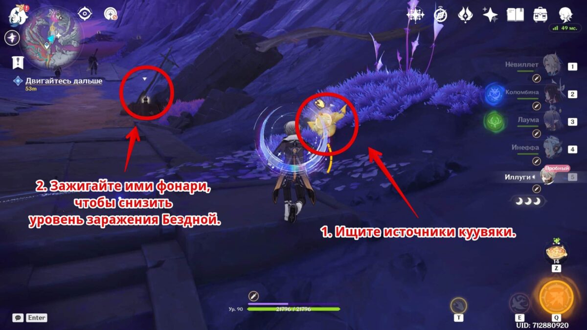 - Метайте наполненные куувяки предметы в Фонари клятвы и стойте рядом с ними.