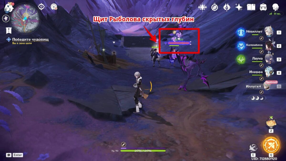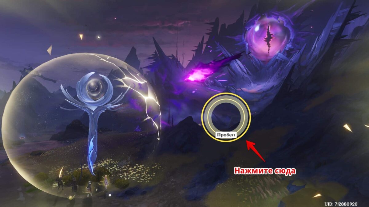 Атаки ока нужно вовремя отразить щитом из куувяки. Заимствуйте энергию у шпилецвета, долгим нажатием ЛКМ ставьте барьер и отпускайте умение в момент приближения снаряда к нему, чтобы тот отразился и ударил по глазу. За это придёт ачивка «Дело всегда в сроках», если не получили её ранее.