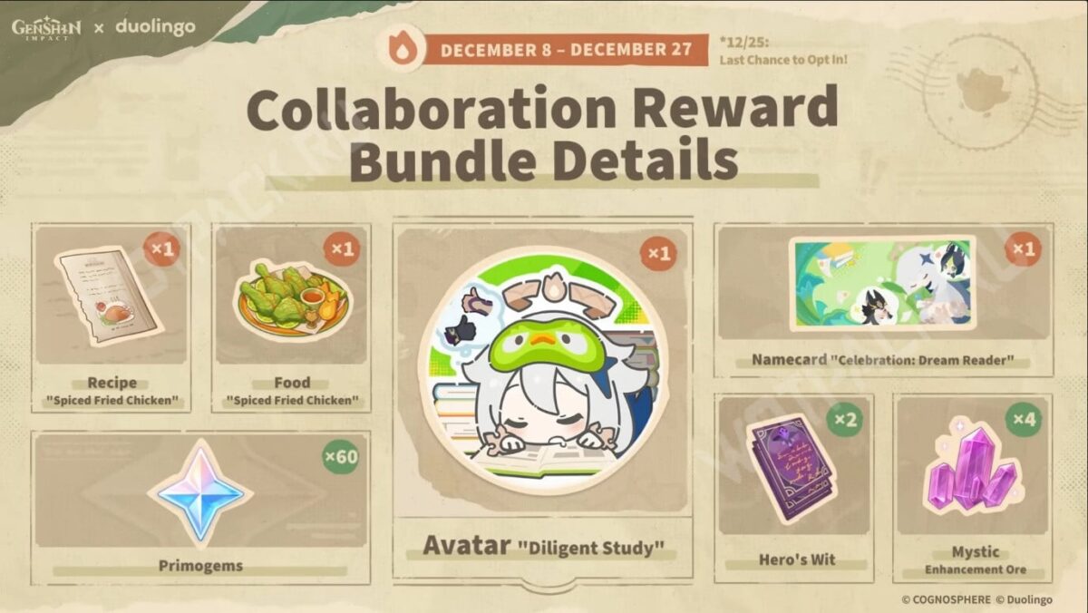 Какие награды в коллабе Геншина и Дуолинго