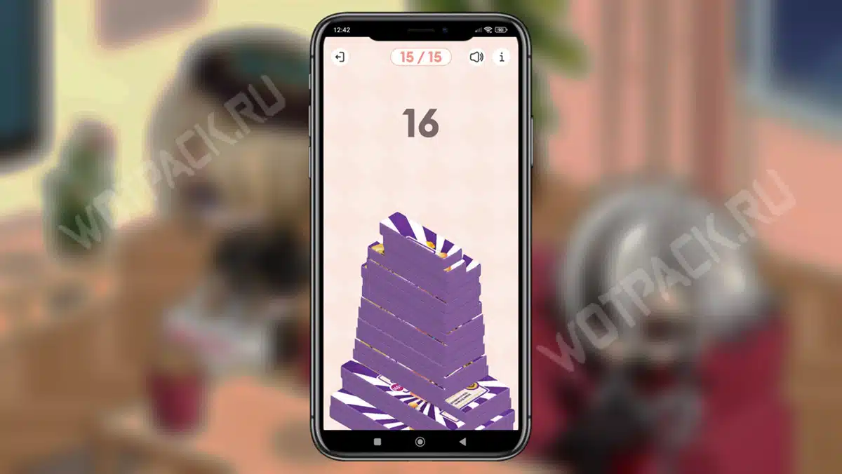- Складывайте шоколадки друг на друга, чтобы башня росла.