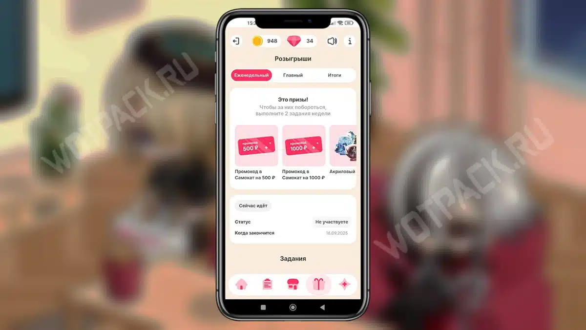 - Выполняя задания недели из раздела с подарочком, автоматически становитесь участником еженедельного розыгрыша: достаточно завершить два таких квеста до окончания периода.