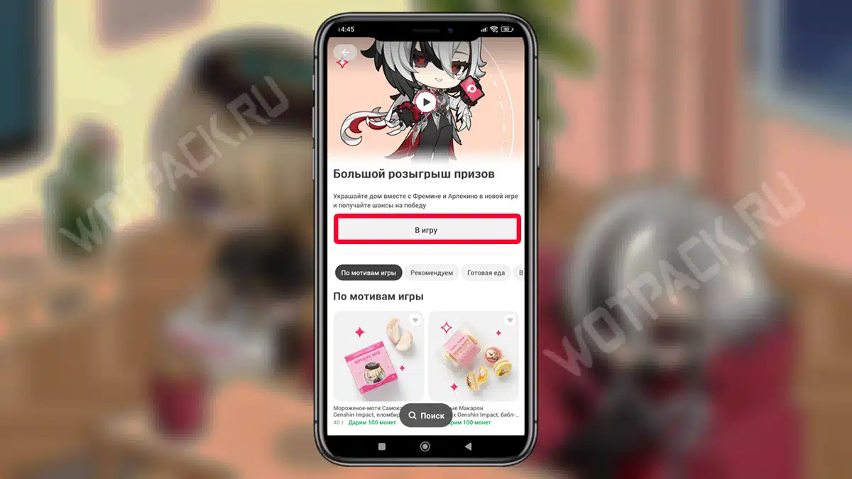 Открыв приложение на мобильном устройстве, сразу увидите баннер с акцией — тапните по нему, и попадете в раздел, посвященный событию. На странице отыщите список призов, тематические вкусняшки, лимитированный мерч и товары для геймеров со скидкой.