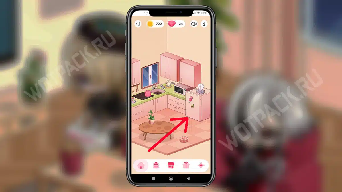 Испытание доступно после накопления четырех кристаллов, за победу выдают 100 монеток один раз в день. Для участия взаимодействуйте с холодильником на кухне: