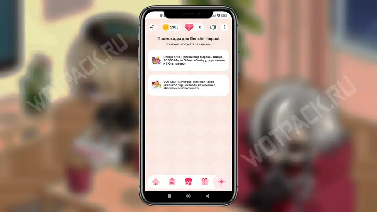 Отыскать призы сможете в последней вкладке в виде звездочки на нижней панельке. Активируются коды внутри Геншина, через меню Паймон.