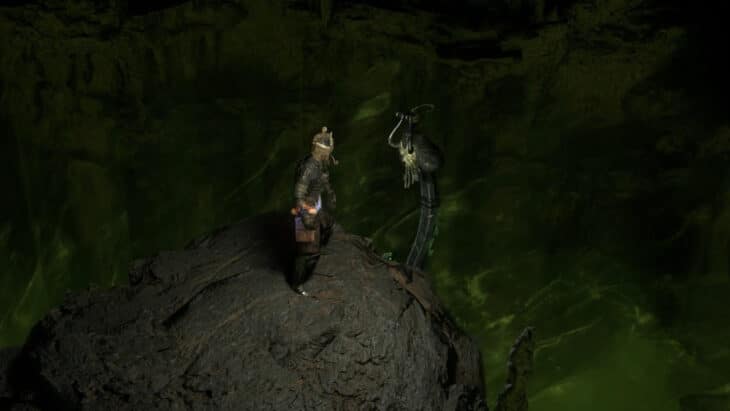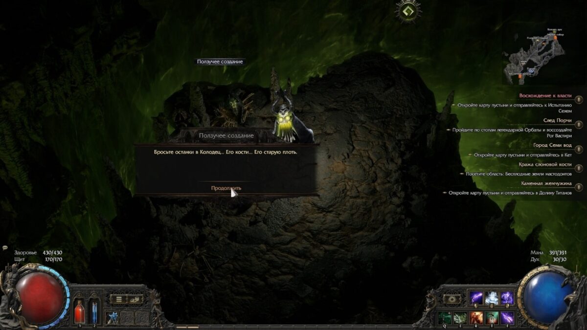 Зачистите пещеры, чтобы добраться до входа в Колодец душ, и пообщайтесь с Ползучим созданием. Чтобы научиться его понимать и открыть возможность крафта, дождитесь появления Скрытного.