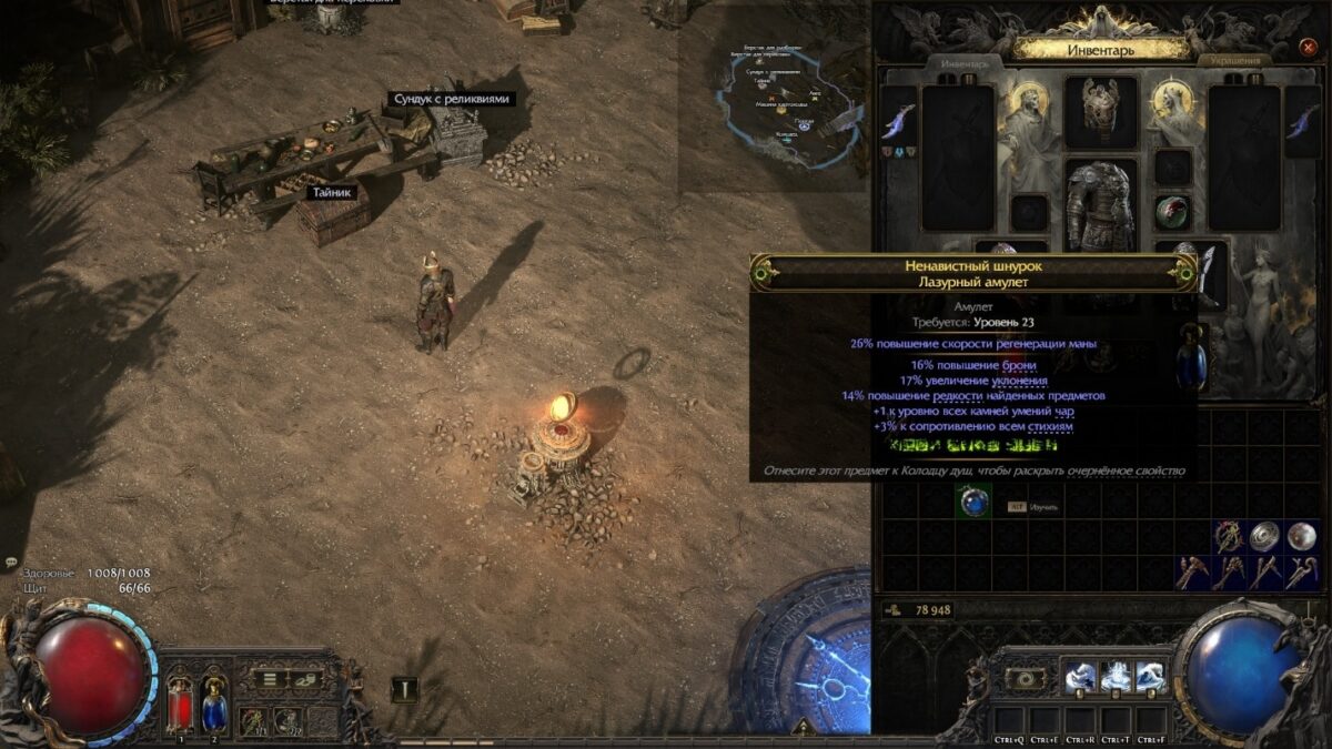 Её можно купить в магазине или выбить с абиссалов и использовать вместе со сферой отмены. Это крайне дорогая процедура (сфера отмены может обойтись более чем в 200 дивайнов), поэтому старайтесь накладывать очернение с умом.