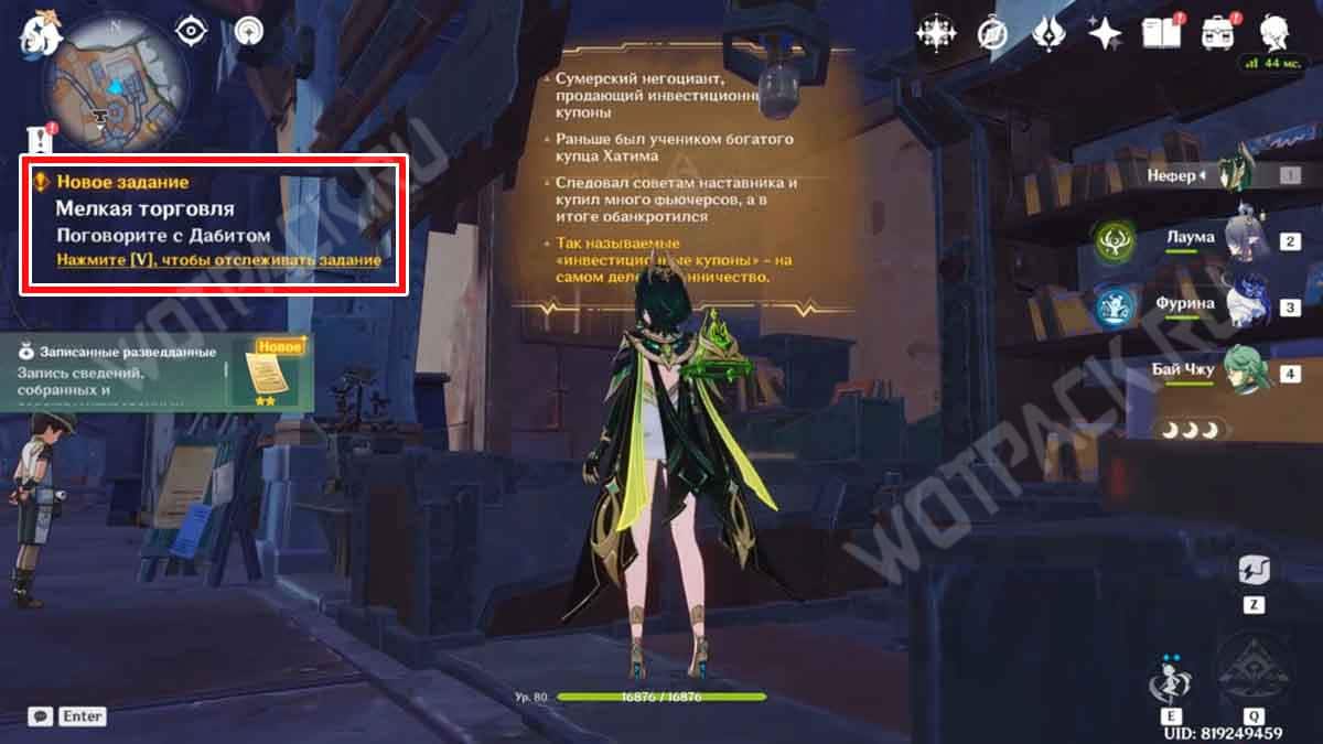 Во время сбора данных за босса Куратория тайн Нефер загляните к Дабиту и воспользуйтесь Е-шкой, чтобы получить досье на торговца. Героиня заинтересуется обманной деятельностью и выдаст небольшой квест «Мелкая торговля». Примите его и начните беседу с мужчиной за стойкой. По окончанию разговора разблокируется трофей, после чего покупка валюты станет недоступна.