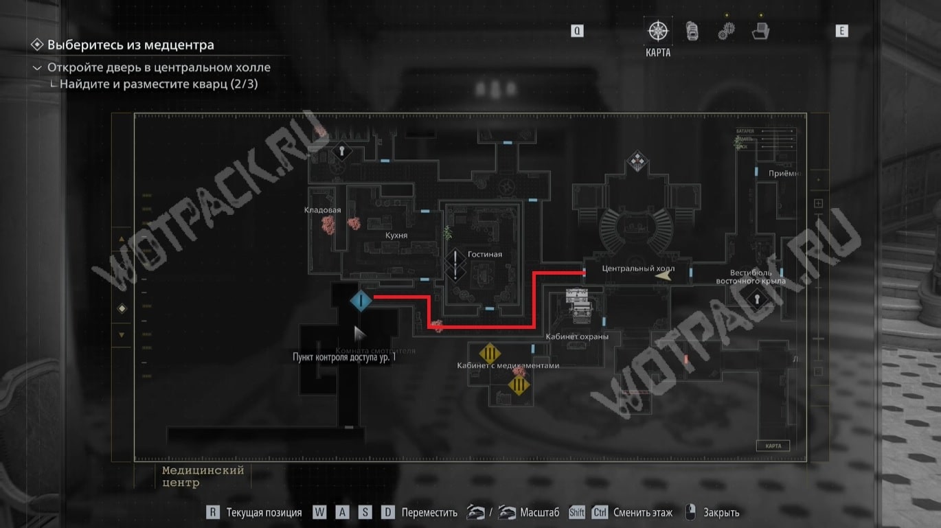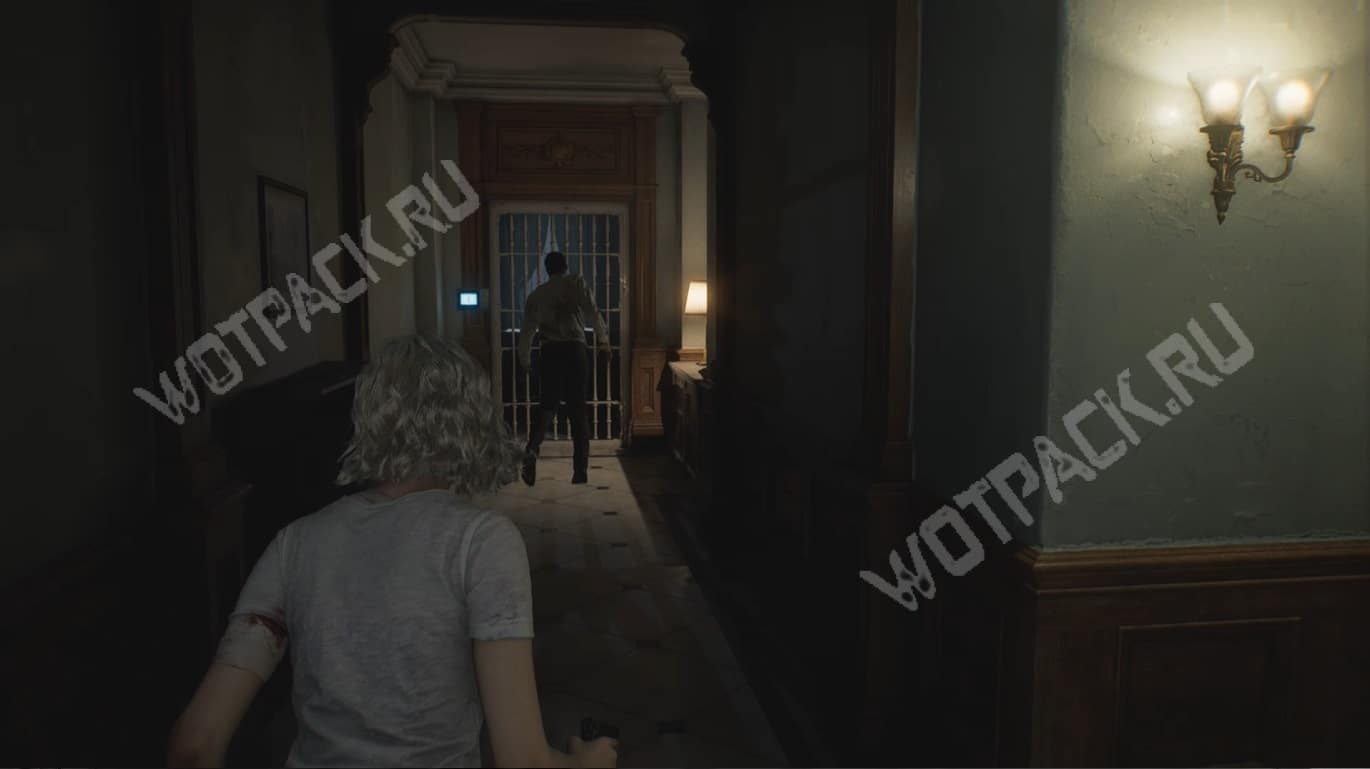 Когда два ключевых предмета будут найдены, вернитесь в центральный холл и двигайтесь в направлении «Пункта контроля доступа ур. 1» рядом с кухней. У двери столкнётесь с одним заражённым — задержите его выстрелом/обычной атакой.