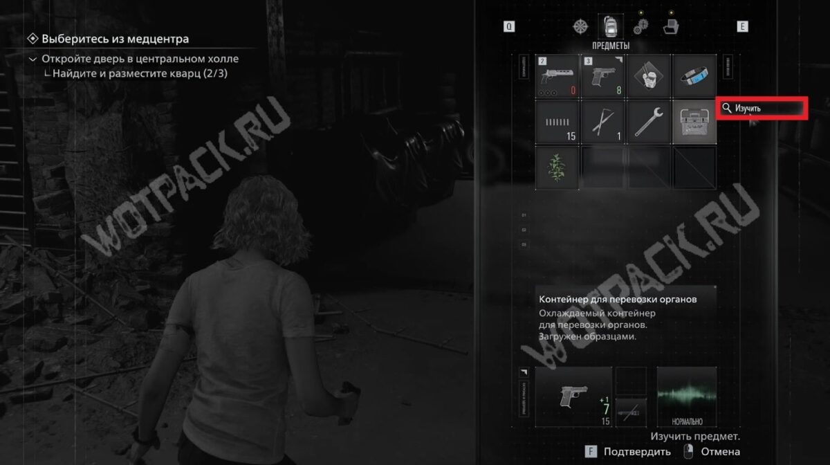 Для прохождения загадки с контейнером для перевозки органов понадобится блокнот с обложкой из кожи — в нём спрятана инструкция с чёткой последовательностью действий.