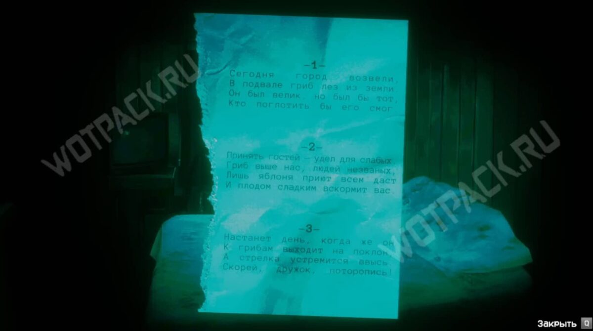 - Впустите женщину с котом, после чего убейте дамочку. При наличии в жилище кота дождитесь дня, когда начнутся пожары. На пороге окажется грибник, возьмите у него квест и подберите в спальне страницу с указаниями.