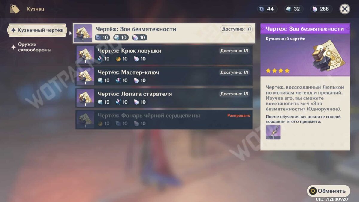 - заготовка приграничных земель ×1 – ключевой элемент чертежа, который добывается в битве с еженедельными боссами из Натлана и Нод-Края в будущем, а также из уровней системы подношений Огонь Тоны и шкатулок;