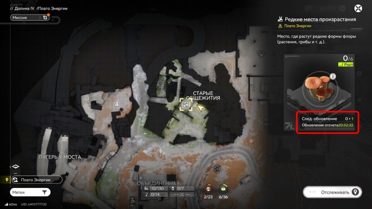 Количество выросших грибов и время до их пополнения отображается на карте, при выборе редкого места произрастания.
