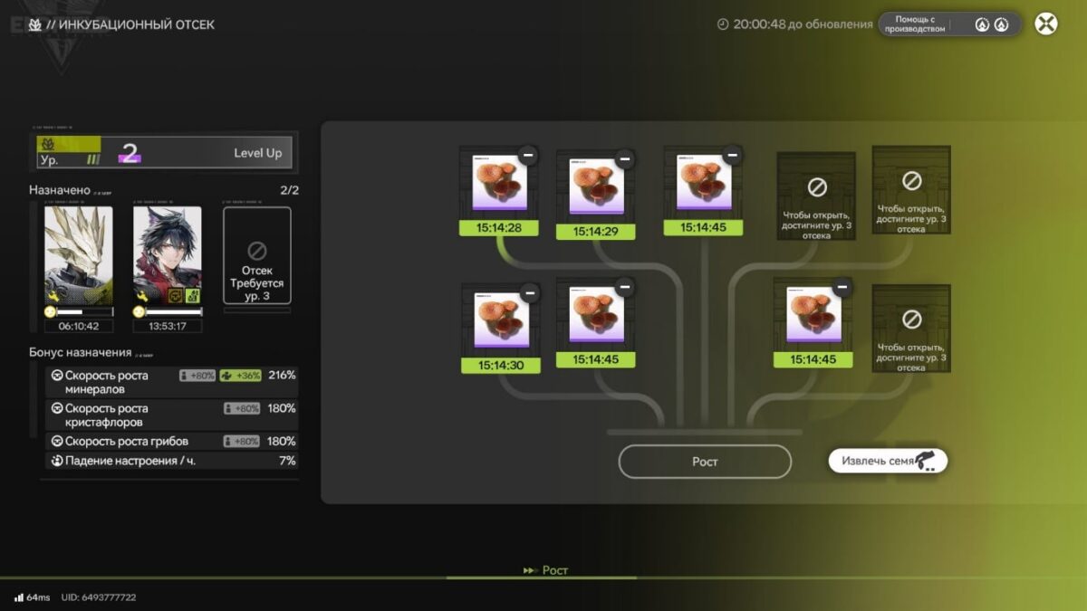 Изначально там растут только низкоуровневые ресурсы, но, если улучшить контрольный нексус до 3 уровня — сможете извлекать семена из материалов фиолетовой редкости.