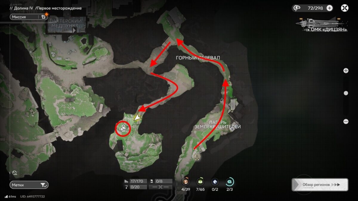- От точки ТП у лагеря Землекрушителей бегите к горному перевалу и спуститесь на лифте в пещеру.