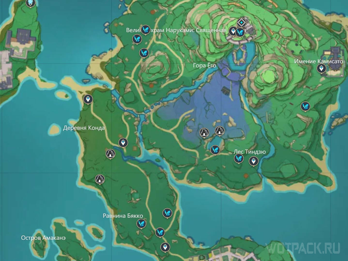 В регионе Инадзума бабочки проживают только на островах Наруками, Ясиори, Каннадзука и Сэйрай. На Ватацуми и Цуруми собрать ресурс не получится. Всего в Электро королевстве можно найти 28 единиц материала. Больше всего бабочек отыщете: