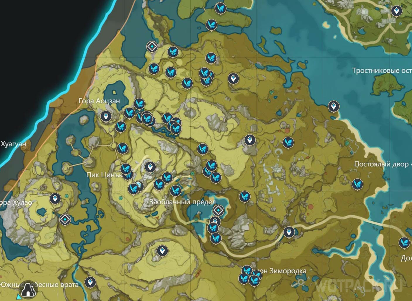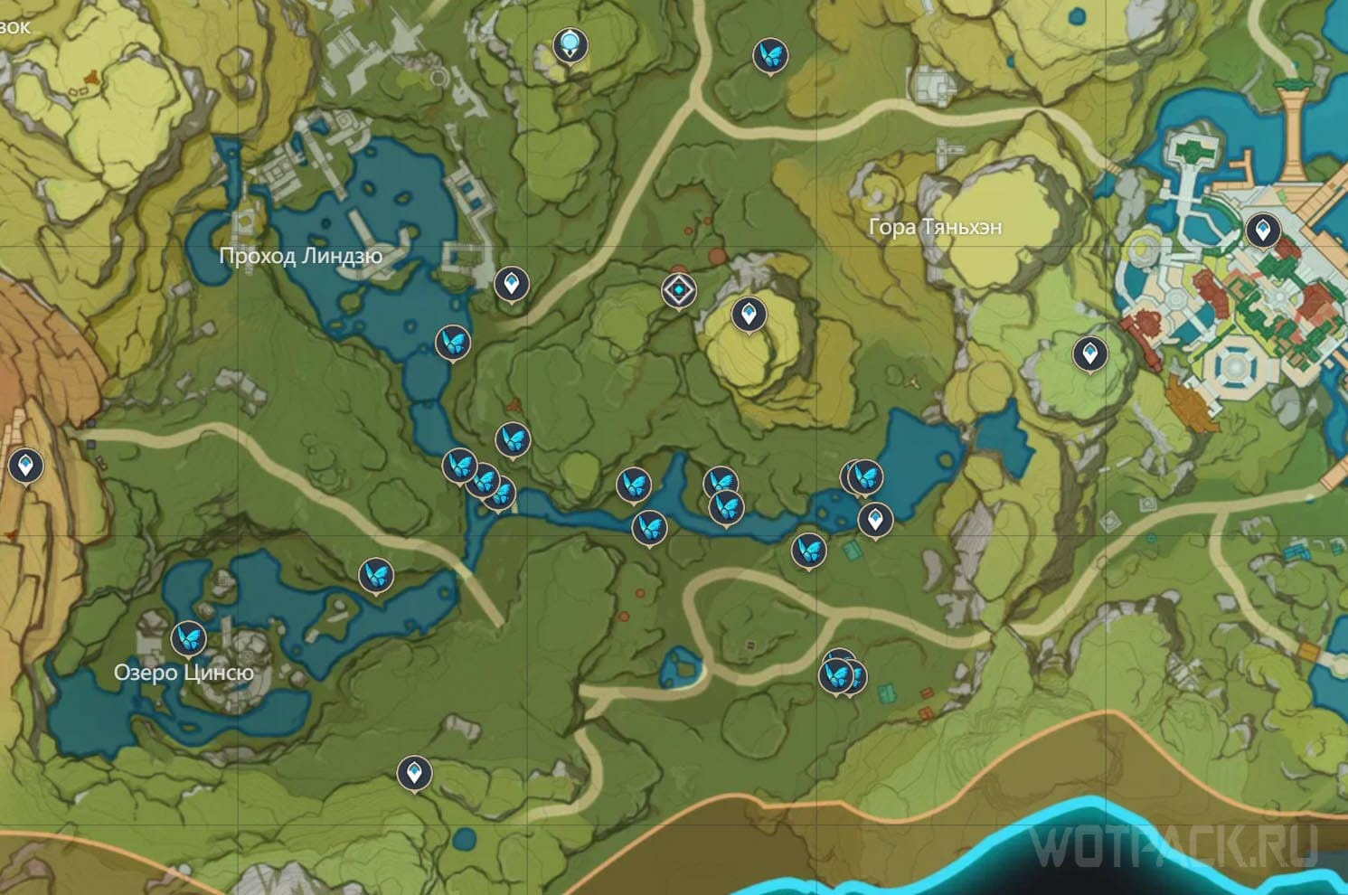 На территории региона Ли Юэ получится собрать рекордное количество крыльев бабочки, а именно 83. Самое большое количество ресурса сосредоточено в следующих местах: