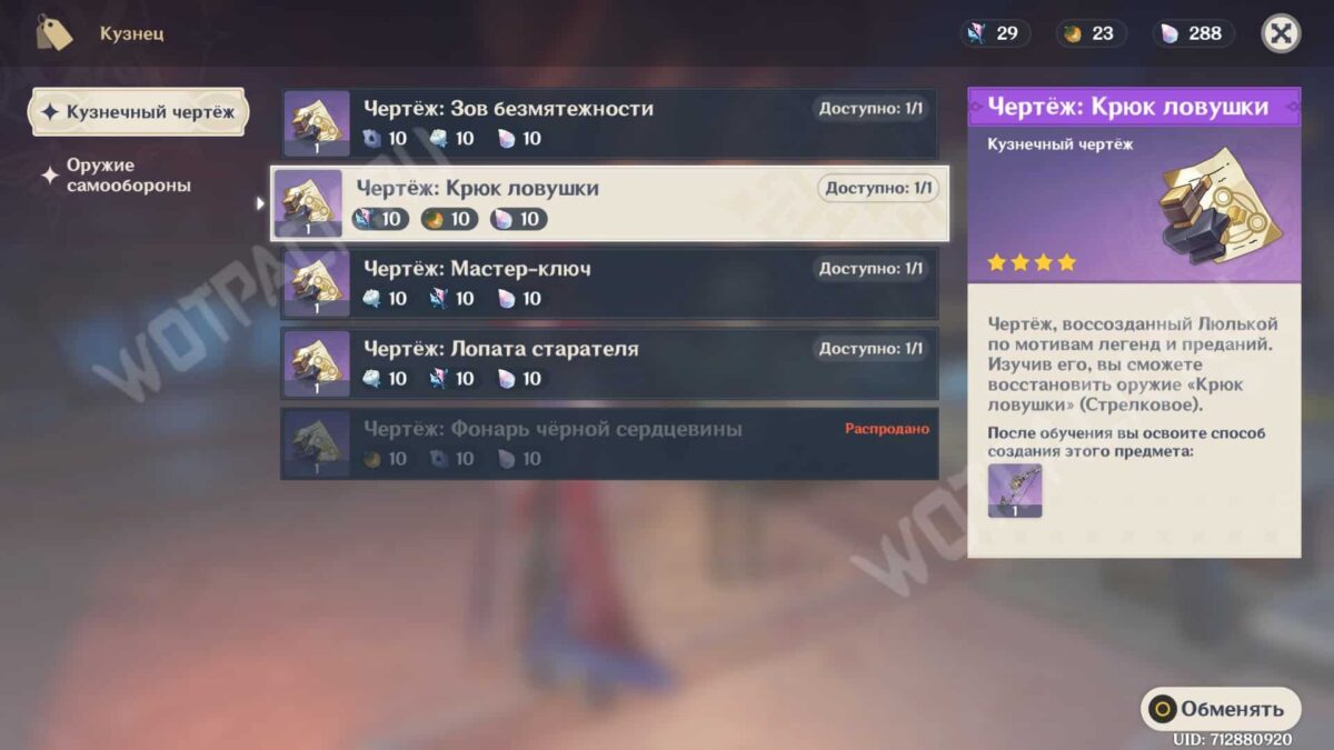 Сначала необходимо обратиться к кузнецу Люльке из Нод-Края для покупки чертежа Крюка ловушки в обмен на: