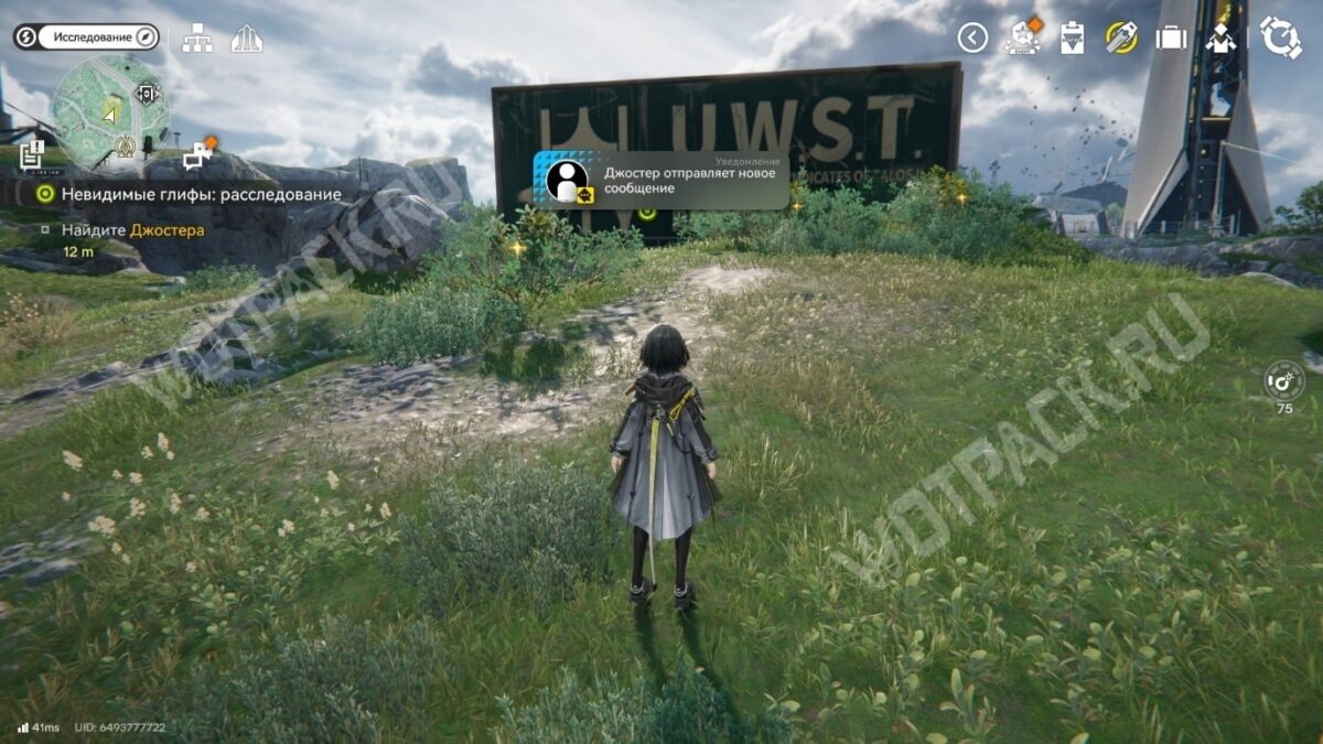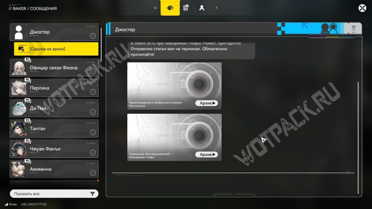 На следующие реальные сутки после прохождения предыдущей главы «Невидимые глифы: открытие», прочитайте сообщение Джостера. Перейдите в меню коммуникатора с помощью кнопки справа от мини-карты и откройте свежее письмо от охранника во вкладке «Сообщения».