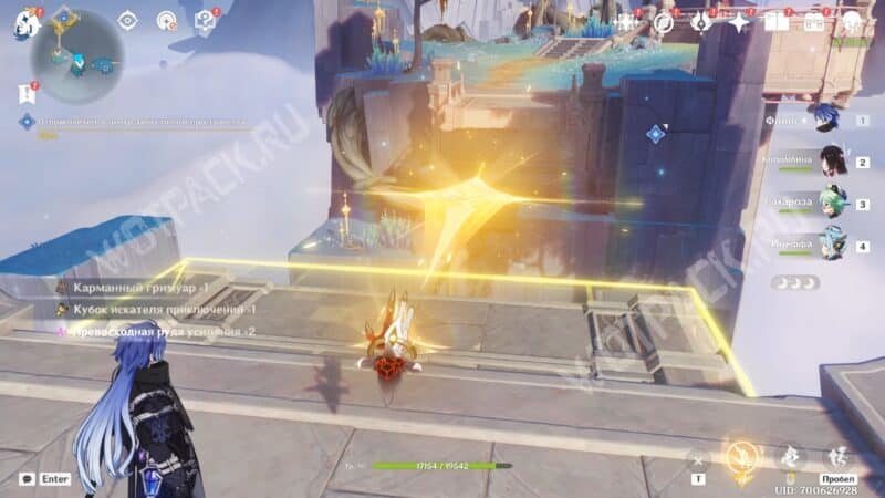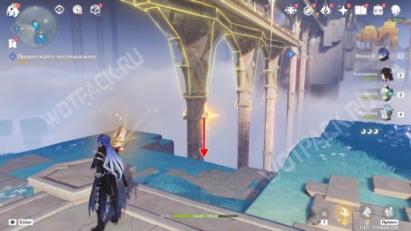 Используйте гарпастум впереди, чтобы взлететь, а затем исследуйте статую Анемо Архонта, которая перенесёт в небеса.