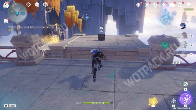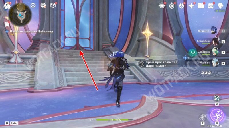Выдвиньте следующий «Мост: Горизонталь» на запад, активируйте точку телепортации, а затем поднимитесь в центр локации с помощью вертикального моста. Через большие ворота войдите в центр зала столпов и поговорите со своими спутниками.