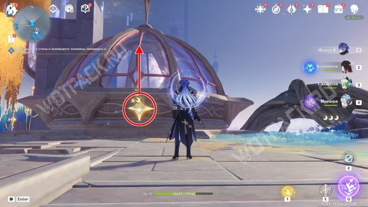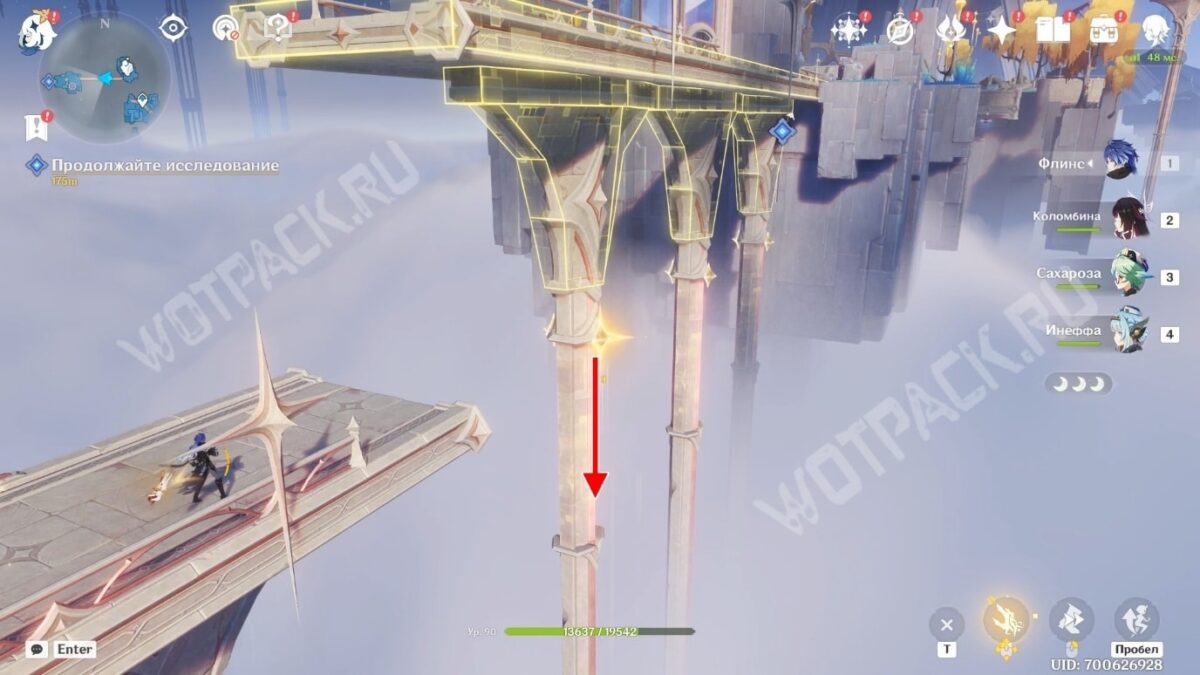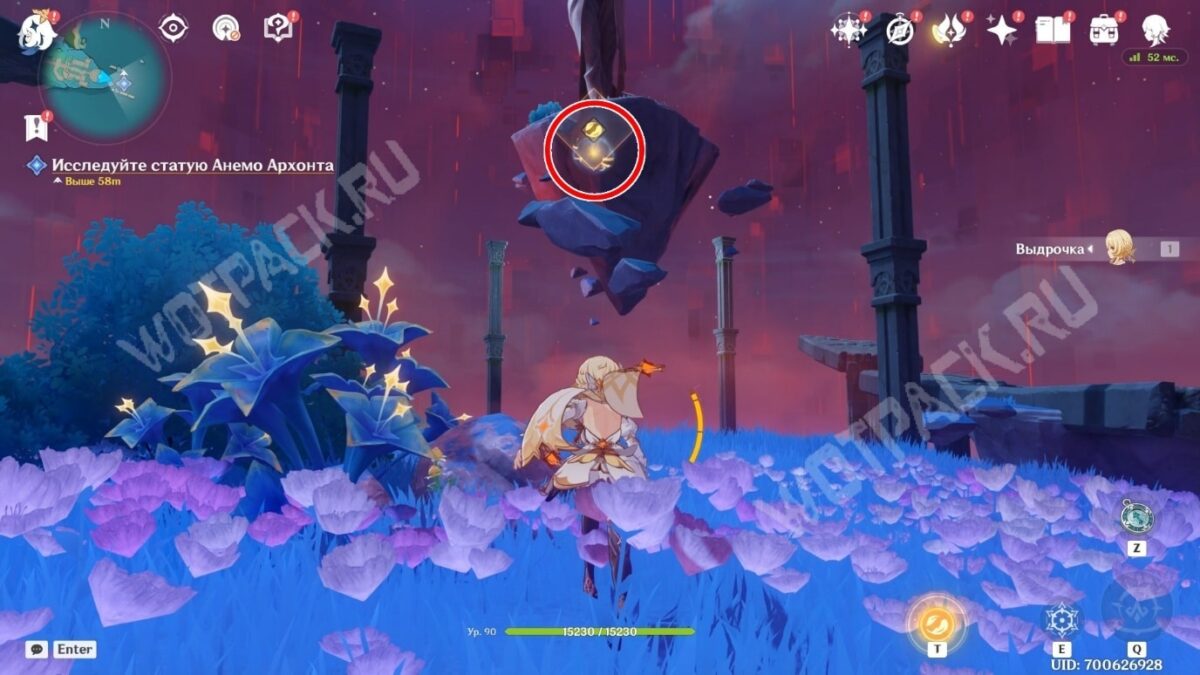 Используйте гарпастум впереди, чтобы взлететь, а затем исследуйте статую Анемо Архонта, которая перенесёт в небеса.