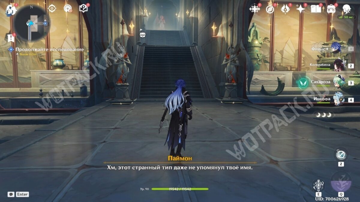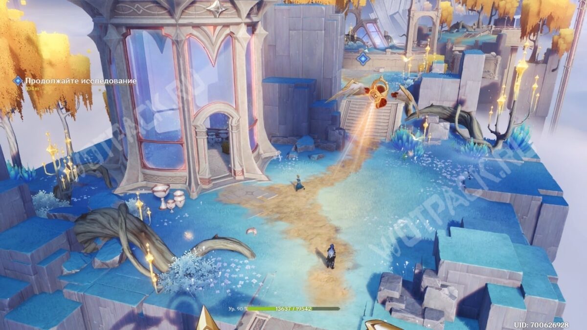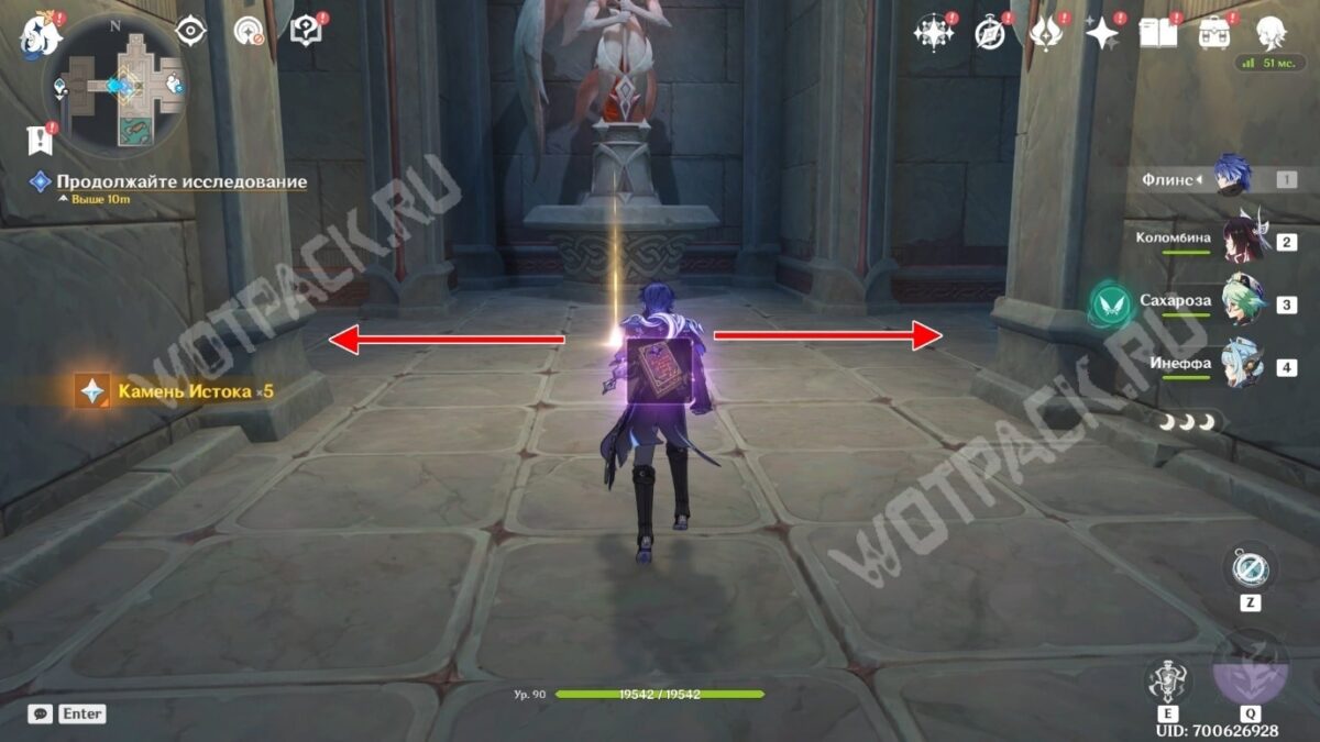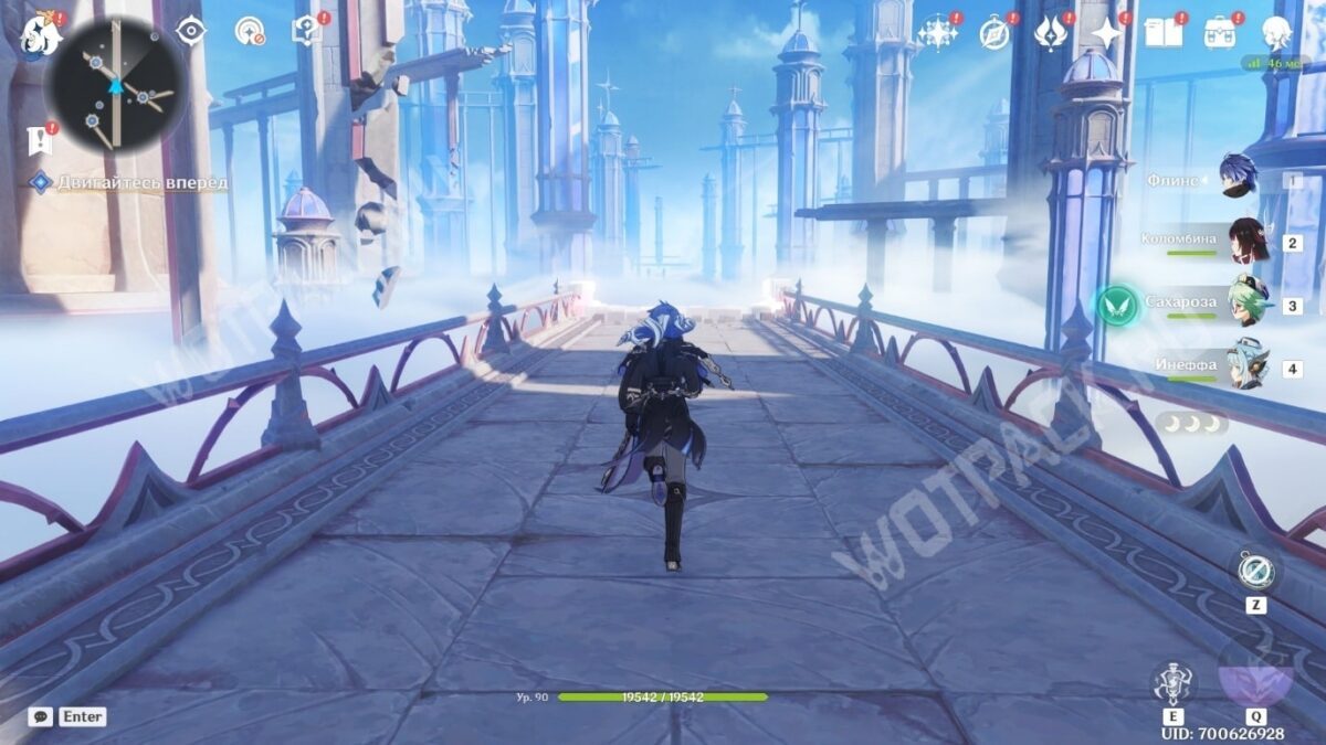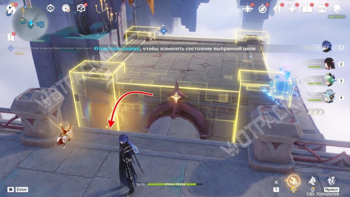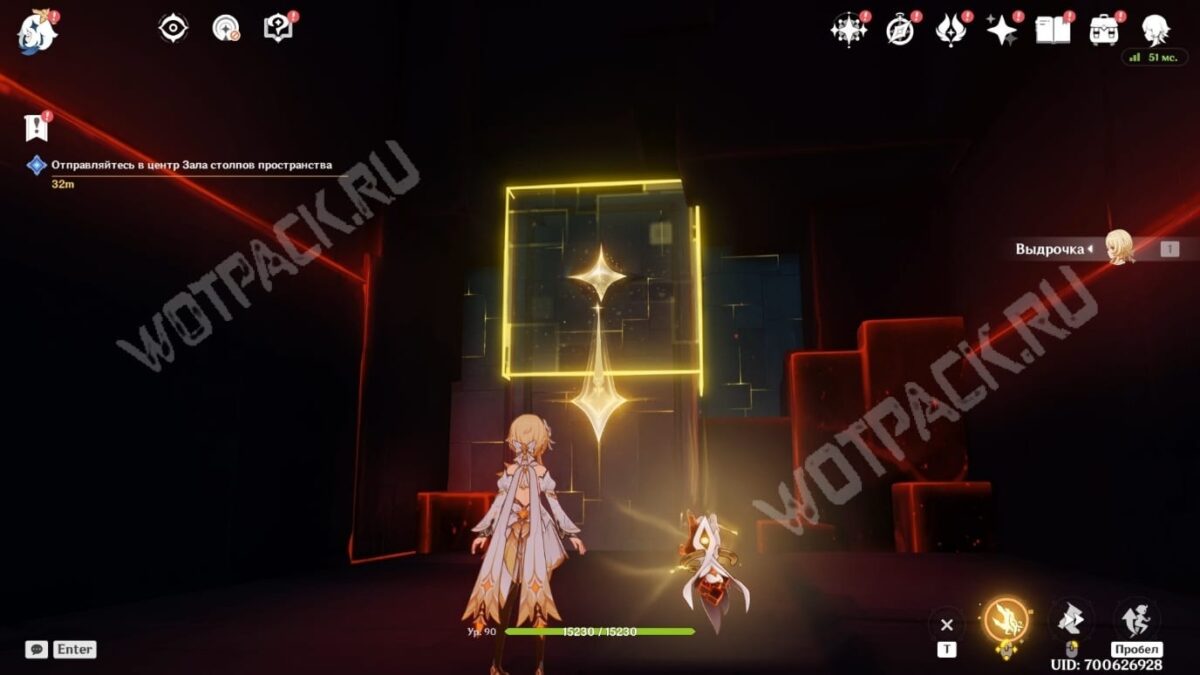 Выдвиньте следующий «Мост: Горизонталь» на запад, активируйте точку телепортации, а затем поднимитесь в центр локации с помощью вертикального моста. Через большие ворота войдите в центр зала столпов и поговорите со своими спутниками.