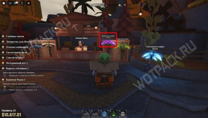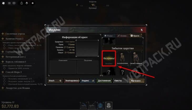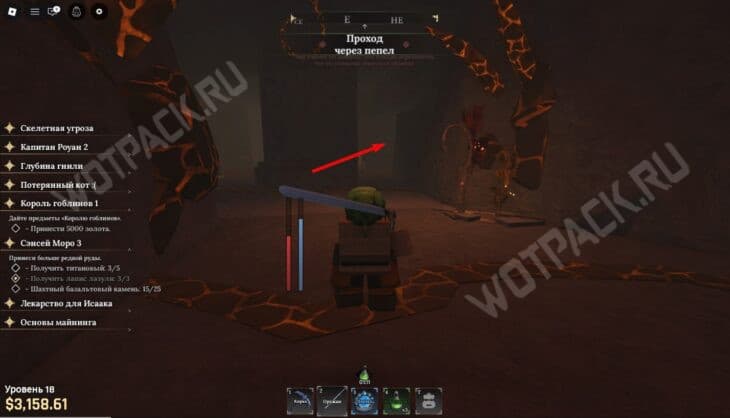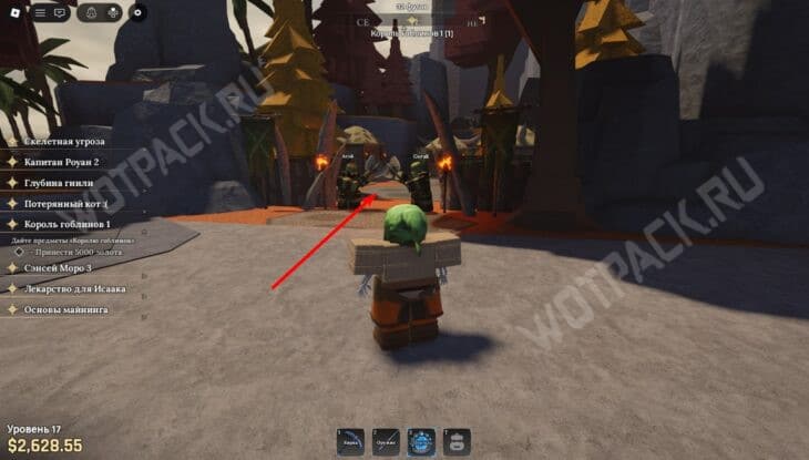 Когда доставите последний комплект предметов, владыка резко пропадет, а на его троне останется Ключ от гоблинской пещеры, открывающий вход в соответствующую локацию. Главная выгода с Квестов Короля гоблинов в режиме Ковка в Роблокс — доступ к содержимому скрытой области: там удастся найти лучшие руды и материалы, доступные на данный момент в игре.