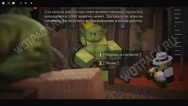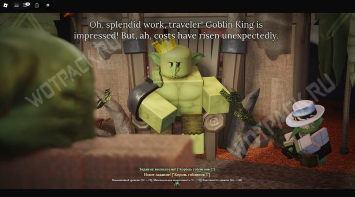 Несмотря на высокие запросы и колоссальную сумму денег, которую придется отдать Королю гоблинов, награды за первые этапы не будет. Каждый раз NPC выдает опыт и опять просит принести еще больше денег и ценностей.