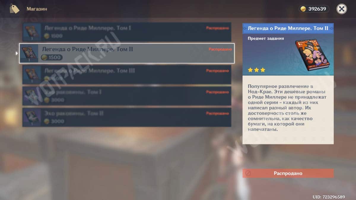 Где найти все тома книги Легенда о Риде Миллере Genshin Impact