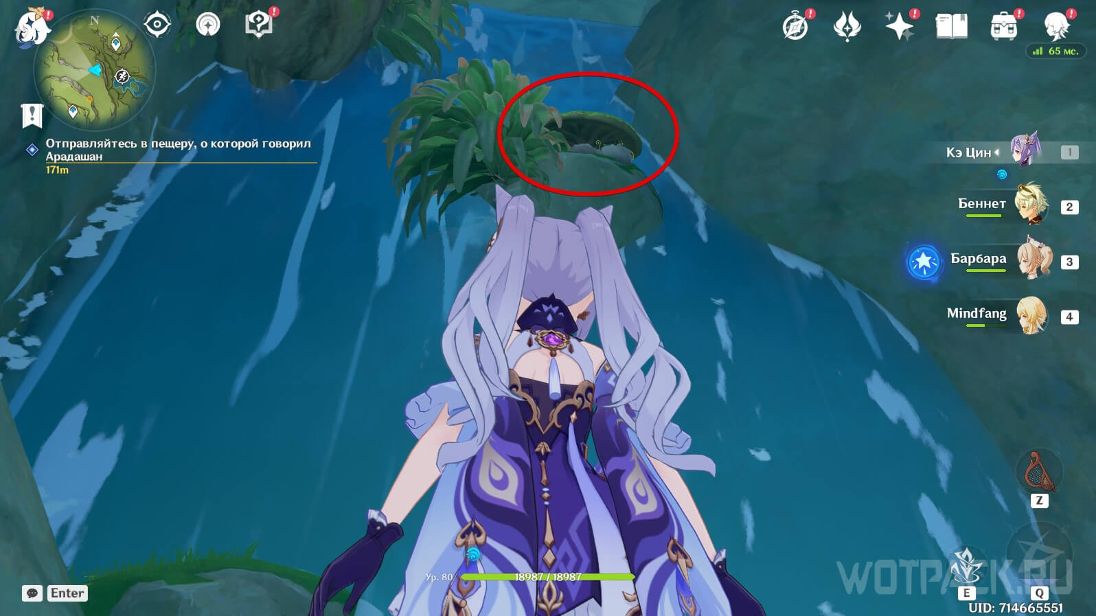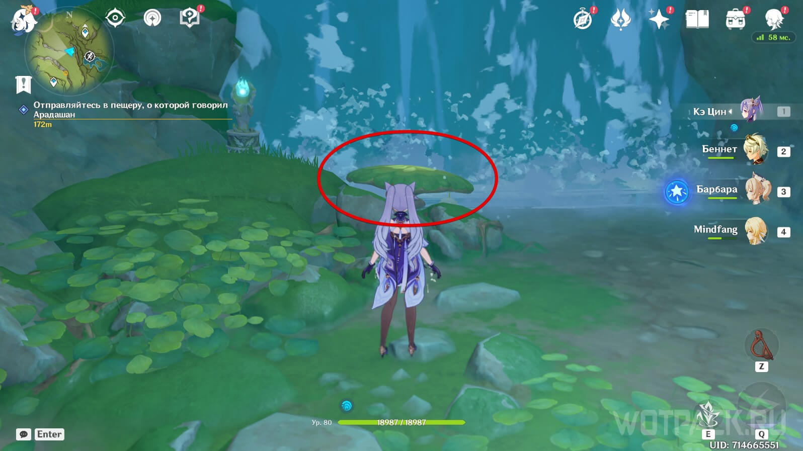 Для этого телепортируйтесь на гору. Спуститесь ко входу в пещеру и идите вперед, пока не уткнетесь в тупик. Используйте прыгучие грибы, чтобы подняться наверх.