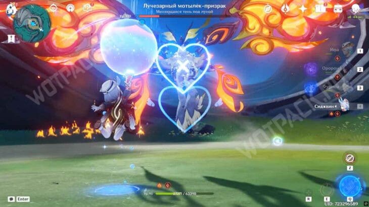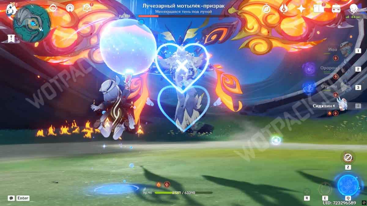 Учитывая механику блокировки активного персонажа, для победы над боссом-мотыльком необходимо правильно выбрать стихии и использовать способности компаньона поддержки, позволяющих разрушить клетку.