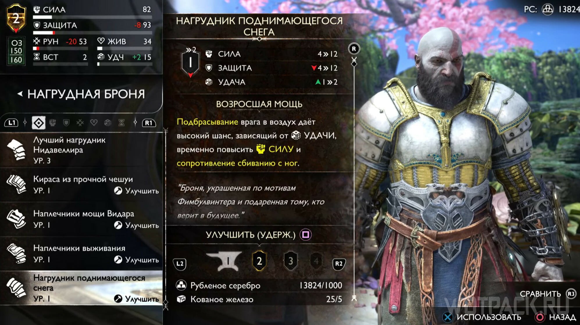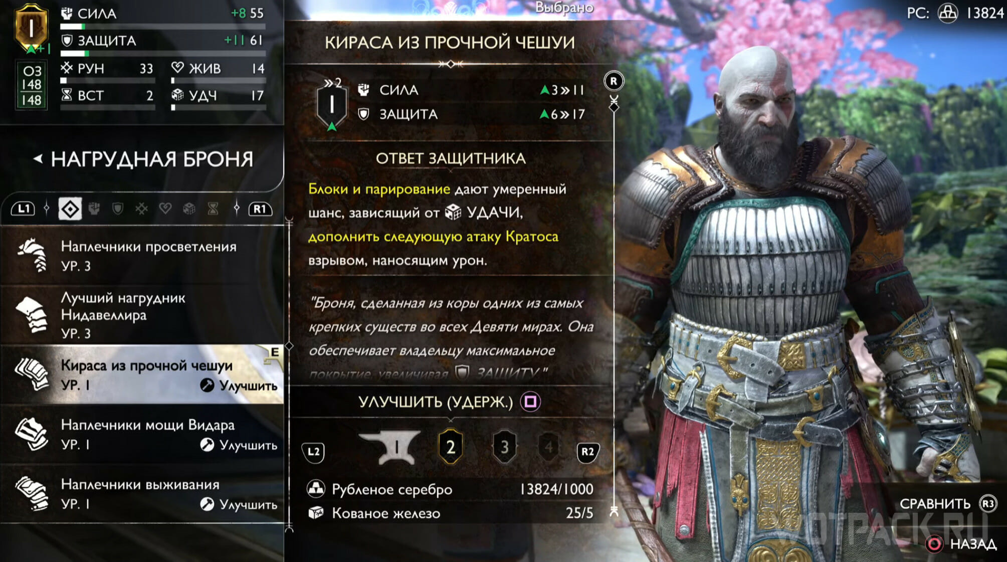 Этот комплект – один из первых наборов, которые удастся создать в мастерской Брока. Его особенность заключается в солидном приросте силы и живучести, а также всплеске здоровья при захвате и оглушении врагов (R3). Доспехи также понижают скорость, с которой противники приходят в себя после эффекта контроля. Сет создан для защиты Кратоса в любом из миров, поэтому имеет отличные показатели на 9 уровне: