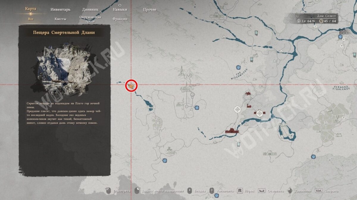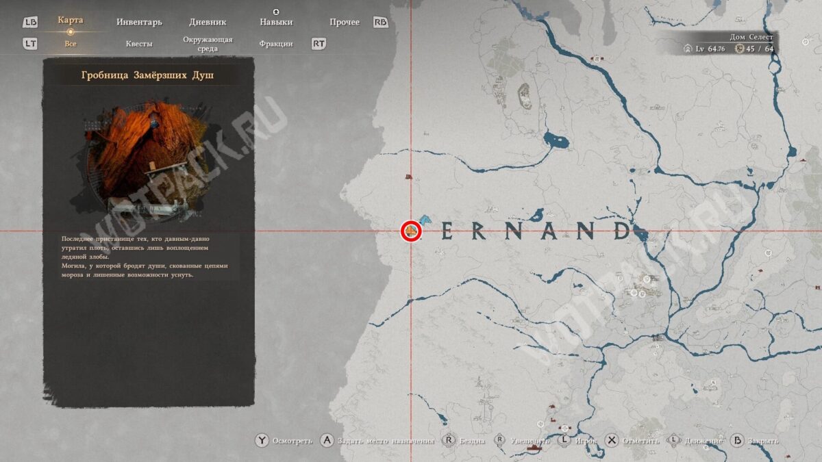 Хранится на третьем этаже в гробнице Замерзших Душ, заполненной культистами Антумбры. Чтобы найти данж, ориентируйтесь на центр буквы «H» в слове «Hernand» на карте.
