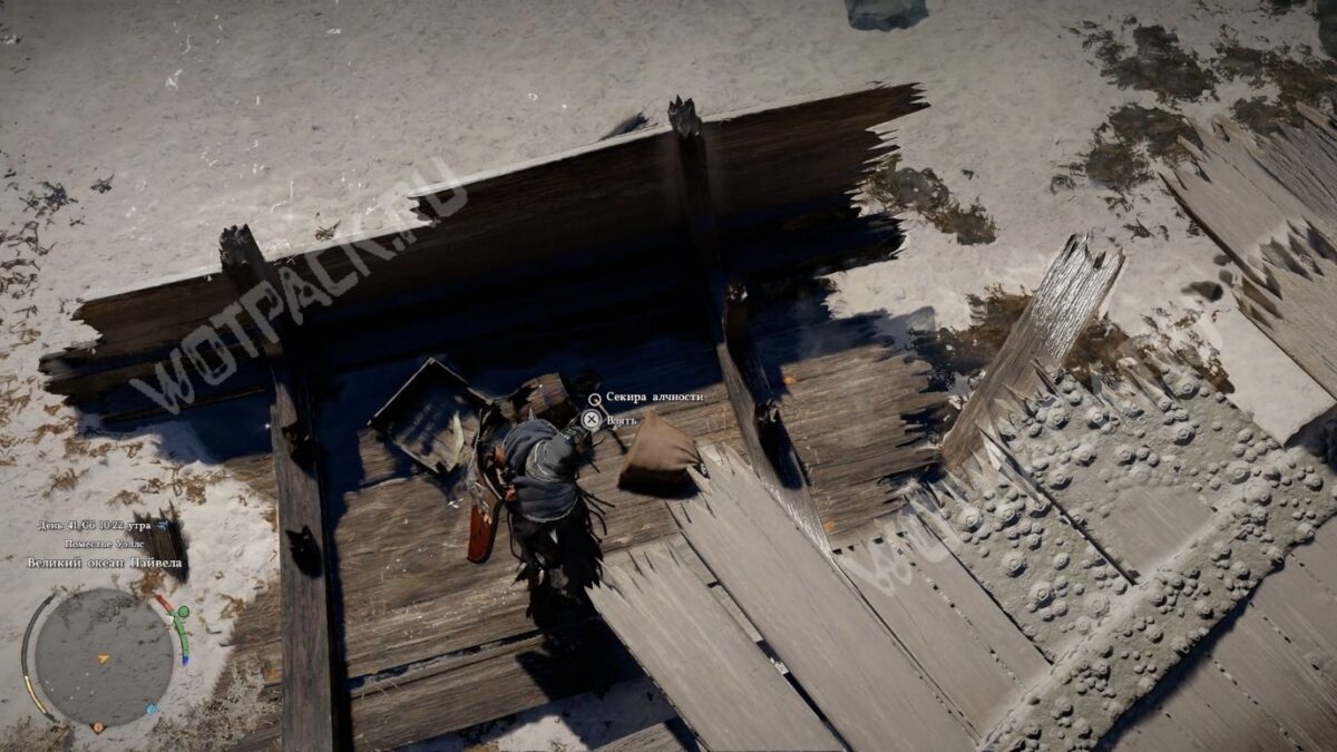 Секира Алчности — одноручный топор, который можно использовать вместо или вместе со щитом. Лежит среди обломков судна у скалы на юге Деменисса.
