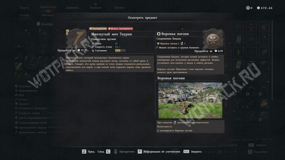 Изогнутый меч Таурии интересен своим навыком, который выпускает стаю самонаводящихся воронов. Выдаётся в награду за победу над Заклинателем ворон в квесте «К гнезду».