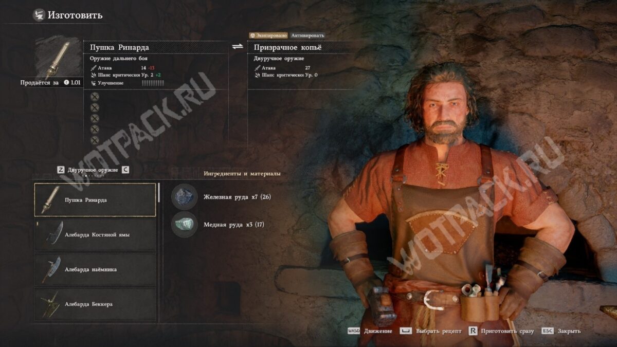 Пушка Ринарда — длинное ружьё, которое служит как ударным инструментом, так и тяжёлым дальнобойным орудием. Можно создать в кузнице после изучения книги «Двуручное оружие мира том 1».