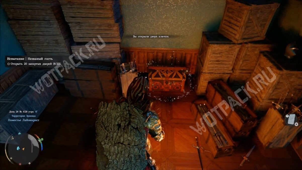 Отправляйтесь к поместью Лайонкрест на западной окраине города Эрнанд и заберитесь в окно с деревянными ставнями отдельно стоящего дома. За запертой дверью справа найдёте сундук с сокровищами.